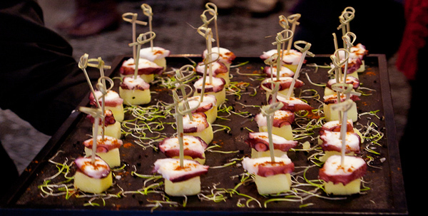Canapés served on the night Calamari, lightly floured, deep fried baby squid w Ouzo Aioli Kotopita - chicken filo pastry w garlic skordalia Kolokythomarida - whitebait, zucchini, haloumis & dill fritters Melitzana - eggplant cheese pita wrap Keftedes - Greek meatballs w Tzatziki Arnisia Souvlakia - lamb skewers Kotisia Souvlakia - chicken skewers (please advise and we will cater to your dietary requirements) Your opportunity to taste and purchase exclusive wines whilst